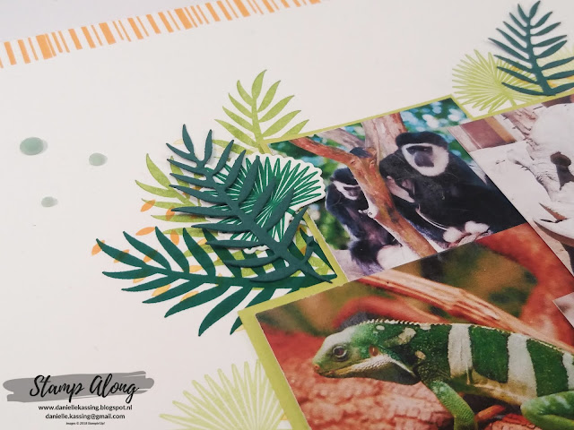 Wat vind jij van deze pagina? Ik ben echt supertrots op het eindresultaat en ik moet zeker vaker een scrapbookpagina maken. Voor de hele pagina heb ik de Tropical Chic Bundle gebruikt. Als je zowel de Tropical Chic stempelset als de Tropical Thinlits Dies aanschaft, ontvang je een bundel korting van 10%. En als je deze maand de bundel besteld, doe er dan bijvoorbeeld ook een inkpad bij. Je bestelbedrag komt dan boven de € 60,= waardoor je een voucher t.w.v. € 6,= ontvangt, die je in september kunt besteden. Bij bestellingen boven de € 50,= neem ik de verzendkosten voor mijn rekening.